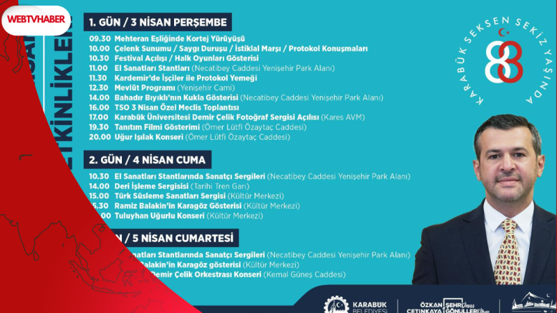 Kültür ve Turizm Bakanlığı’nın katkılarıyla, Karabük Belediyesi’nin ev sahipliğinde gerçekleştirilecek olan kutlamalar, 3-4-5 Nisan tarihleri arasında şehrin dört bir yanına yayılacak. Konserler, sergiler, geleneksel gösteriler ve kültürel etkinliklerle Karabük’ün sanayi hafızası yeniden canlanacak.