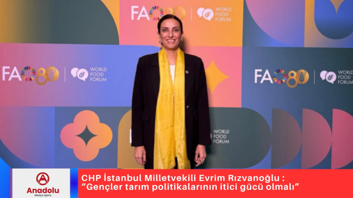 Cumhuriyet Halk Partisi İstanbul Milletvekili ve Çevre Komisyonu Üyesi Evrim Rızvanoğlu, 10–17 Ekim tarihleri arasında Roma’da düzenlenen Birleşmiş Milletler Gıda ve Tarım Örgütü’nün (FAO) amiral gemisi niteliğindeki etkinliği Dünya Gıda Forumu’nda Çarşamba günü bir konuşma gerçekleştirdi. Rızvanoğlu, yaptığı konuşmada gıda kaybı ve israfı, iklim krizi, gençliğin tarım politikalarındaki rolü ve kamu politikalarının dönüştürücü etkisi üzerine önemli mesajlar verdi.