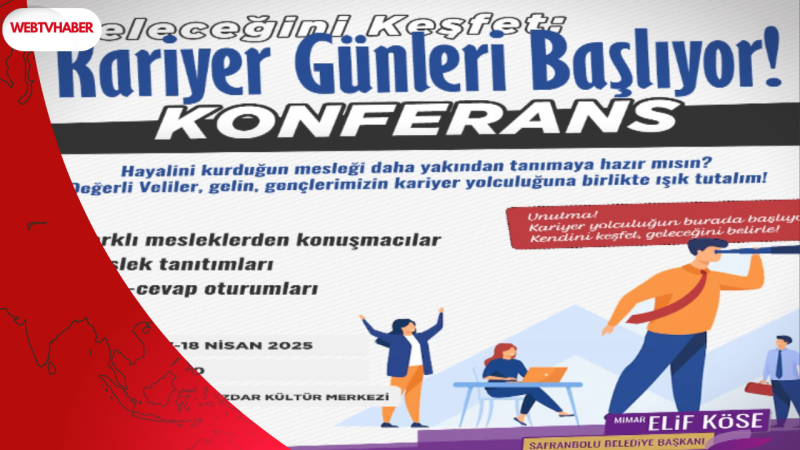 Safranbolu Belediyesi, gençlerin meslek seçimi sürecine ışık tutacak bir etkinliğe imza atacak. 17-18 Nisan tarihlerinde Leyla Dizdar Kültür Merkezi’nde düzenlenecek Kariyer Günleri, öğrenci ve velileri, alanında uzman profesyonellerle bir araya getirecek.